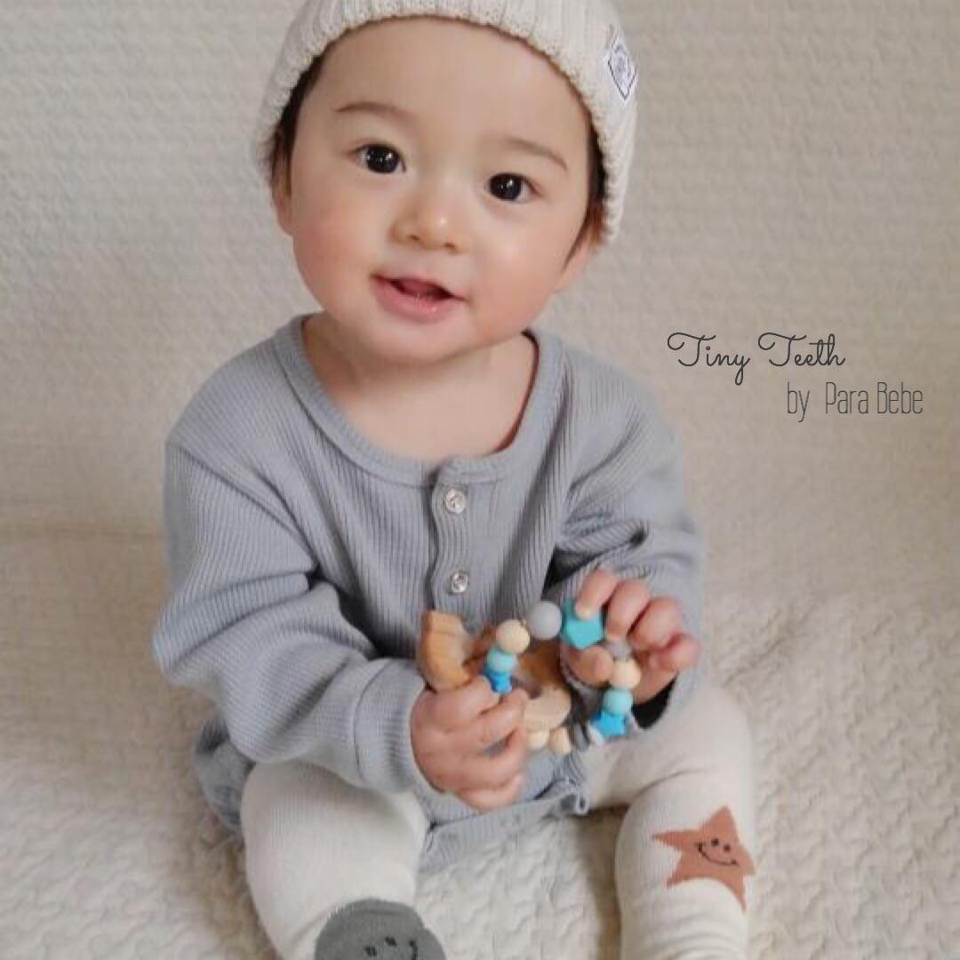 ビーズはBPAフリー・天然木・食品衛生法をクリアしたものを使用しており赤ちゃんの口に入れても安心です。