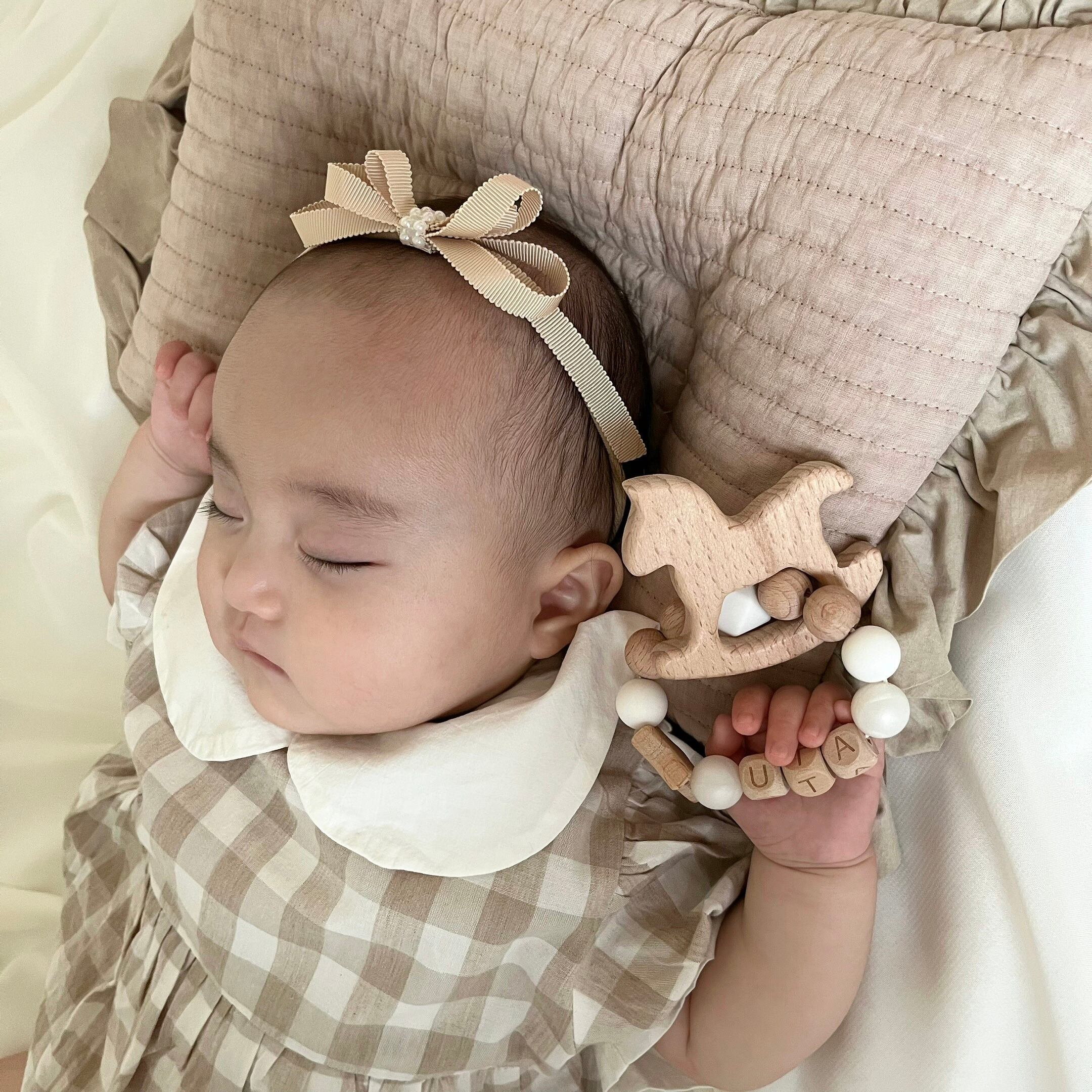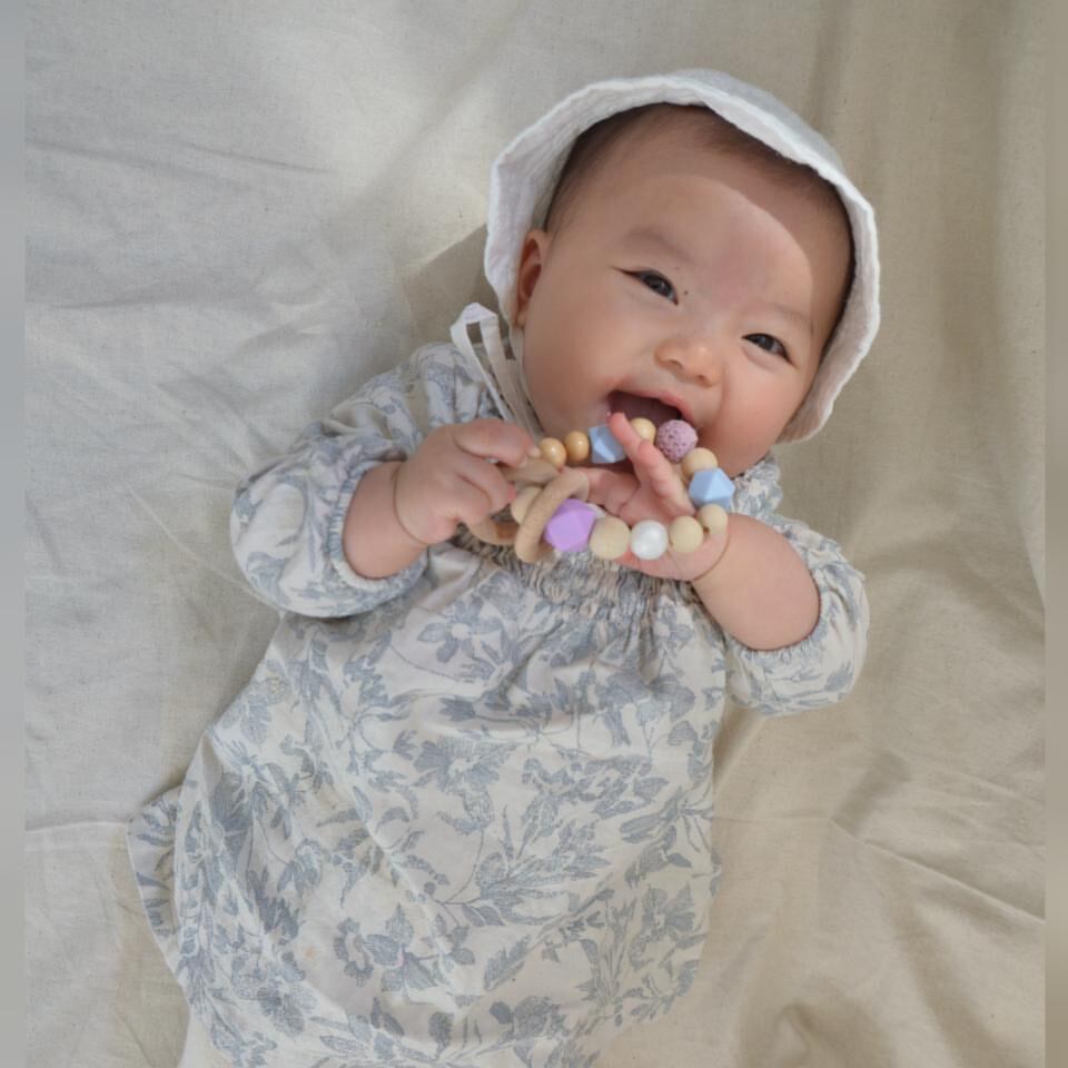 ビーズはBPAフリー・天然木・食品衛生法をクリアしたものを使用しており赤ちゃんの口に入れても安心です。