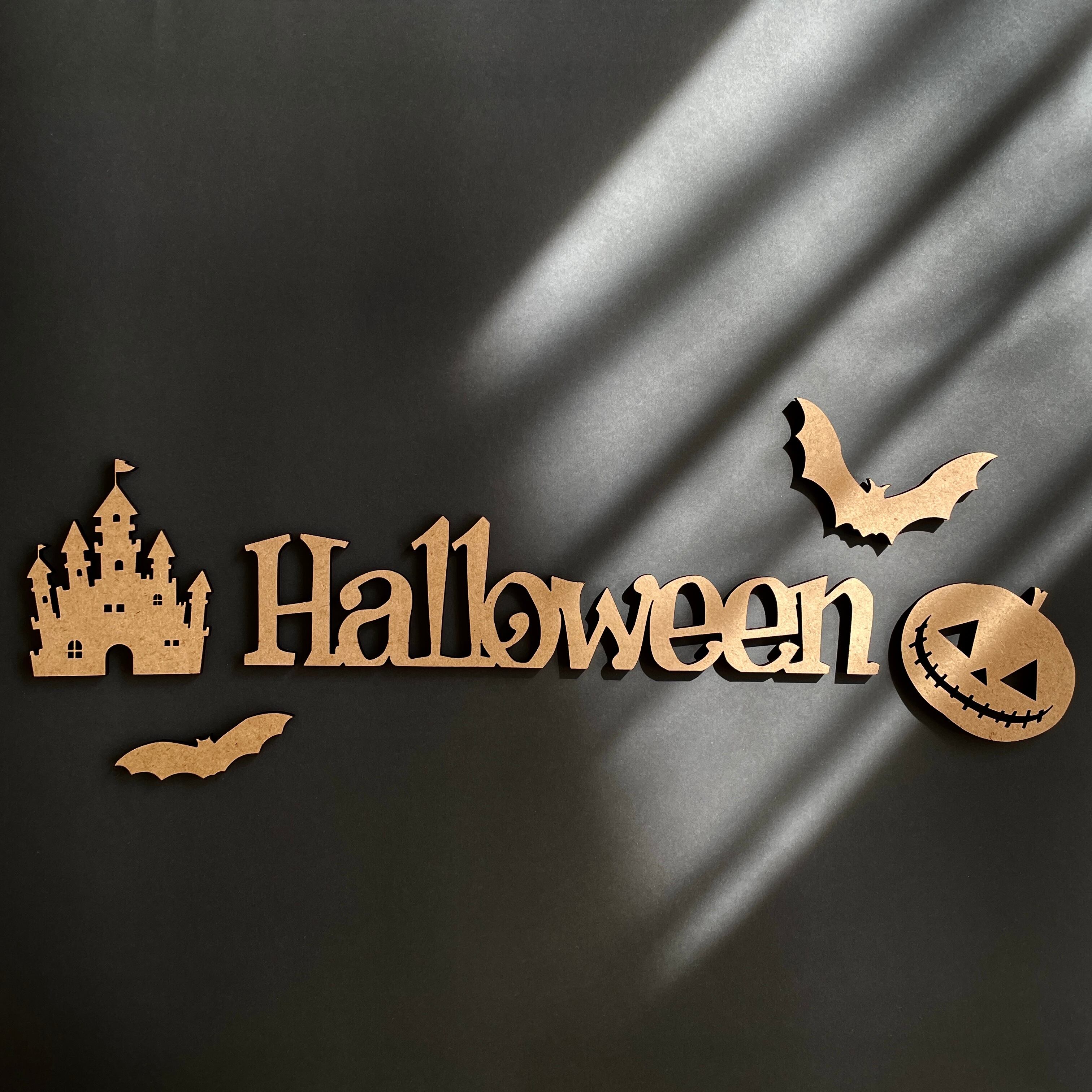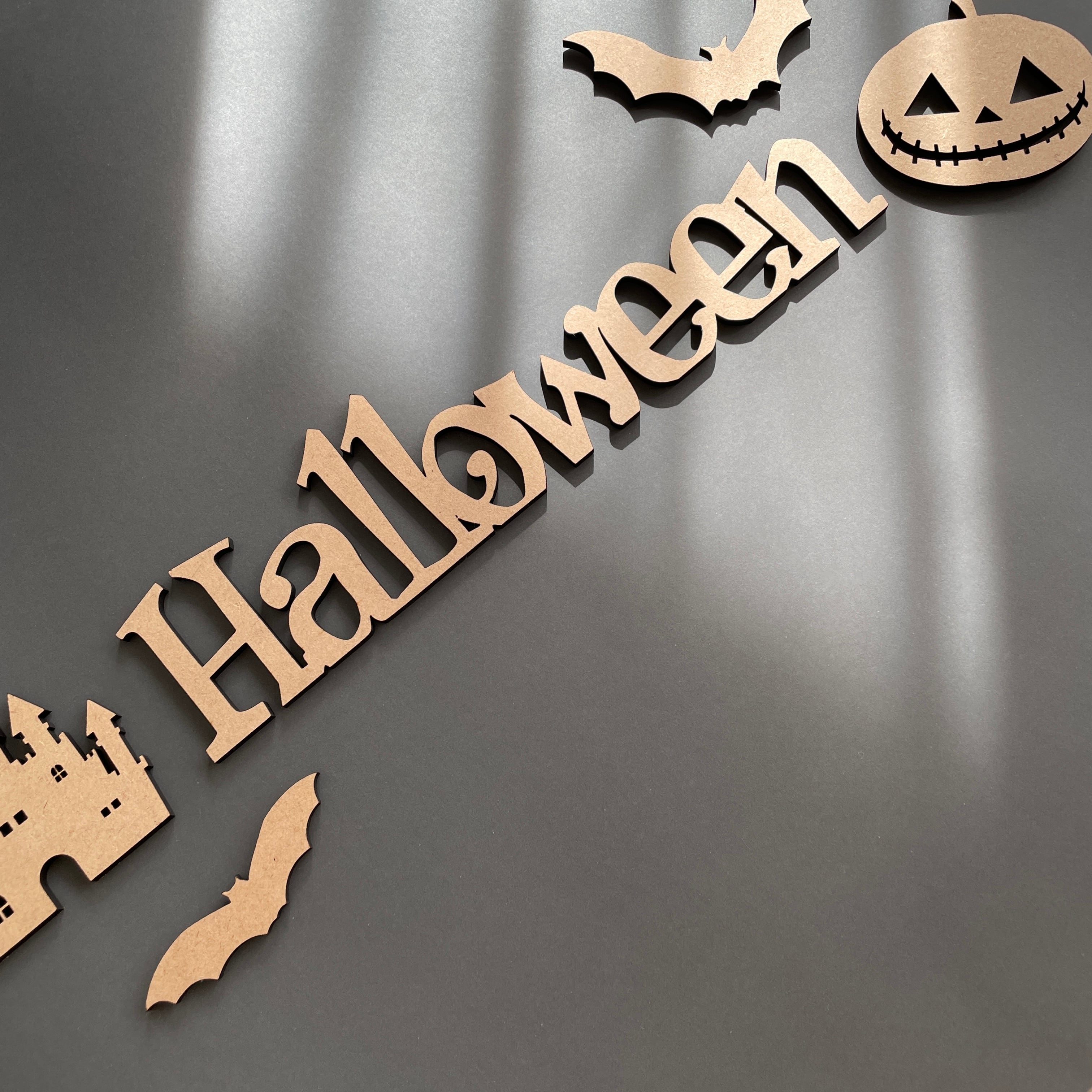 ハロウィン飾りとしてくり返し使える木製レターバナー。